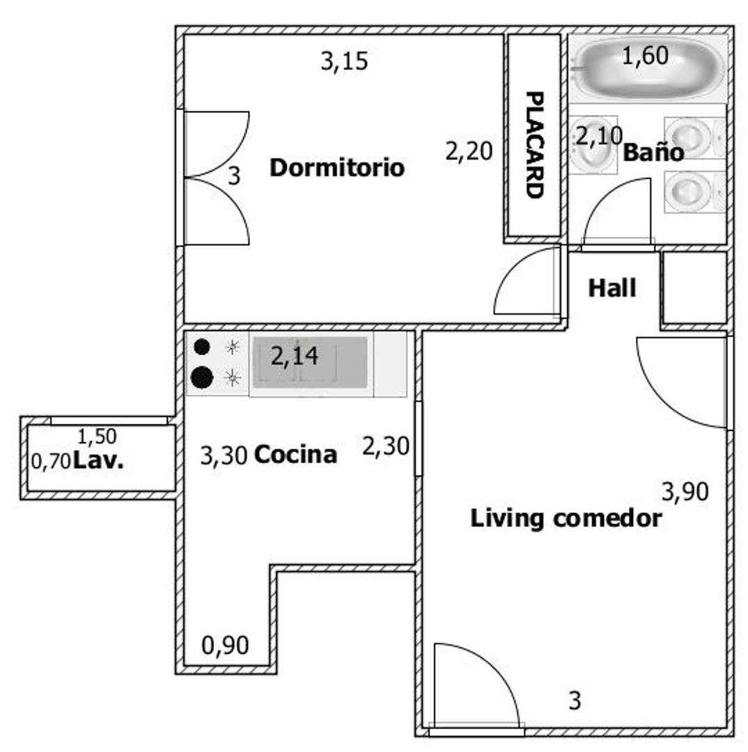 Lavadero: 0,70 x 1,50